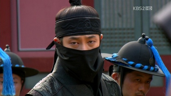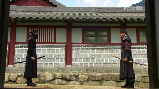 覆面を取る前のシンミョンと対峙したシーンも素敵です。後ろから呼び止められ、向かい合う二人の2ショット。素敵です。