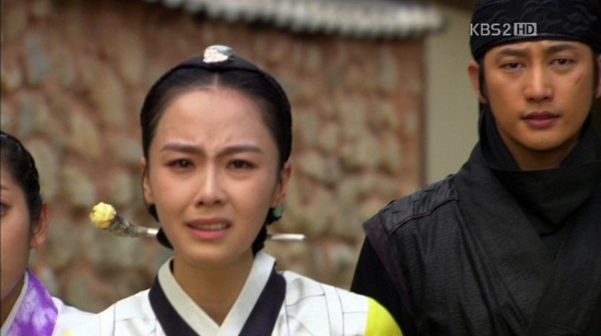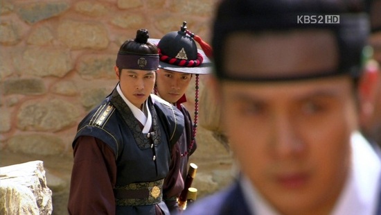 後を追う兵たちから逃げ、潜んでいたもの陰から姿を現したところでシン・ミョンに見つかってしまいます。