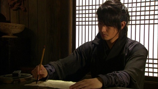 特権階級でないと、字(漢文)は書けませんので、スンユが実は身分の高い家の人間であるとソクチュに察しがつくシーンですね。