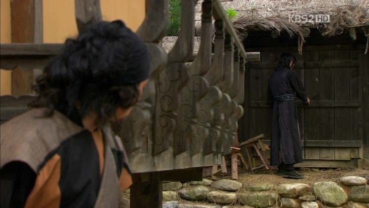 納屋のある裏庭にものを運ぶよう頼まれたノゴルがしぶしぶ応じたところ、素早く自分が引き受けるスンユ。
