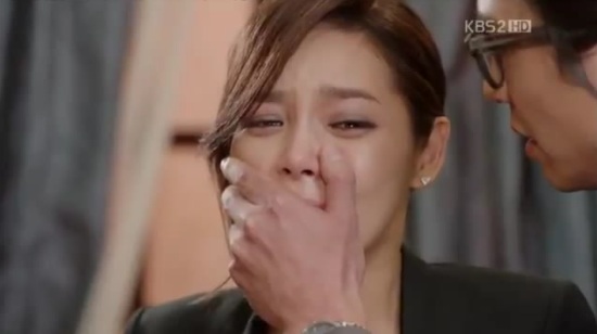 アン弁護士を睨み、家政婦を呼ぼうと声をあげたジェヒの口をふさぐアン弁護士。