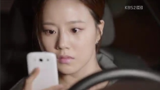 メールに気を取られたウンギは対向車線にはみだし、歩道に乗り上げます。