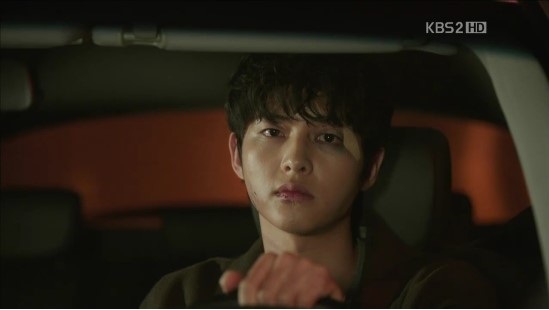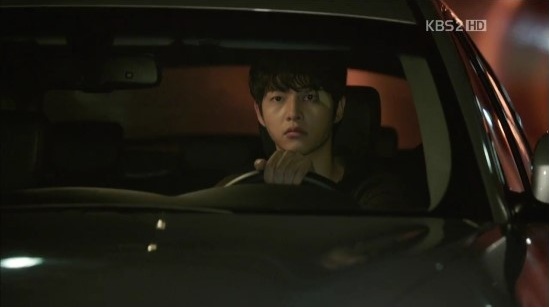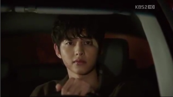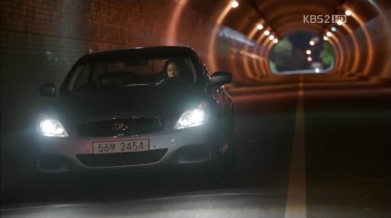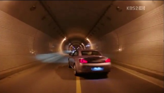 思いつめた表情でハンドルを握っていたウンギは、対向車がマルだと気づくと、いきなりハンドルを切って対向車線を走りはじめます。