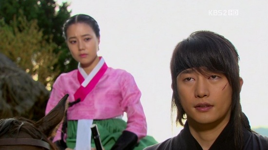 スンユはセリョンを乗せ馬を走らせますが、セリョンはまだ癒えない背中の傷が痛み、小さく呻きます。