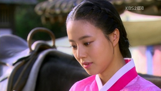 途中の市場でスンユに馬を止めるよう願い出たセリョン、アガンのためのお土産を熱心に選びます。