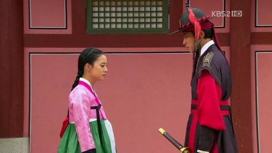 ちんぴらがぶらさがってるとこはどうでもいいんですけど、よーく考えると実は話がちょっとぶちきられ気味。でももうひとつ怒っているのはセリョンが宮殿の衣裳部屋に入って靴をみて敬恵公主と過ごした日々を思い出すところもなく衣装替え。あーあ、余韻もなにもないわー!