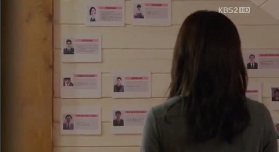 壁に顔写真と名前を張り、主要人物を覚えるウンギです。