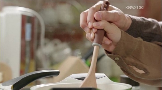 シャワーから出てきたマル、「焦げるよ」と背後からそっとウンギに近づき、スープをかき混ぜます。