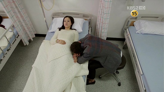 心配でたまらないマル、ウンギの手を握り、髪をなでながら見守り続け。