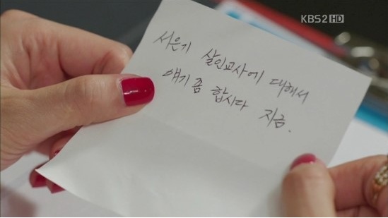 ウンギについての議題を持ち出すジェヒ。その時ジェヒに、誰からかメモが渡されます。