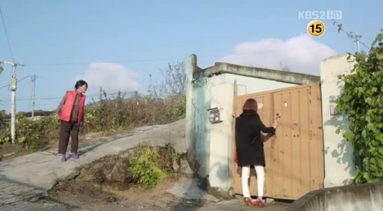 ジェヒを見つけ、町内のおばさんが声をかけます。