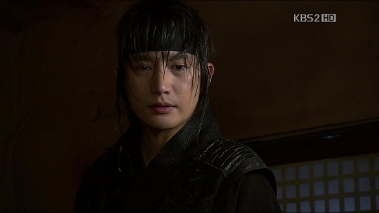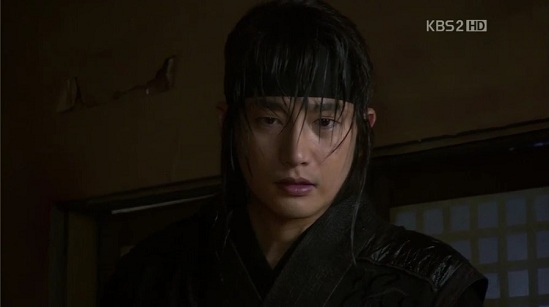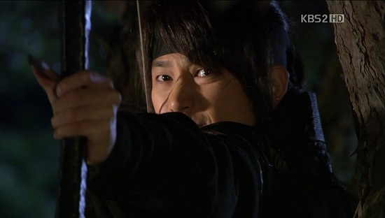 物陰からシン・ミョンを狙っていたスンユが、いまだとばかりに弓を引き。