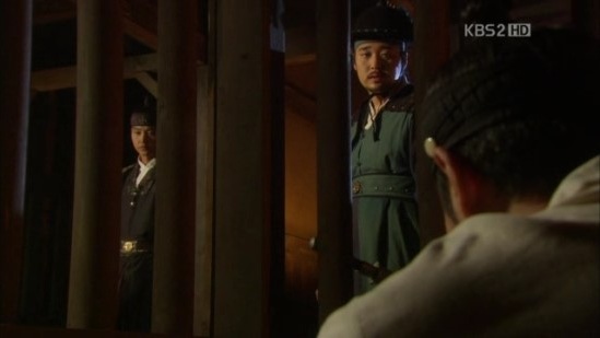 門番は誰も謀反人と会わすことは出来ないとキョンヘに強硬に出ますが、ソン・ジャボンが現れ、キョンヘを中に入れます。ここはカットでしたが。