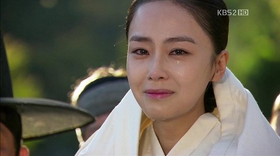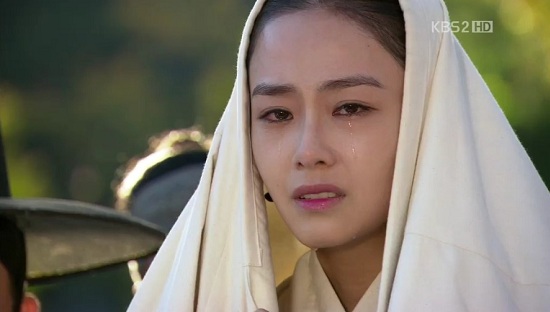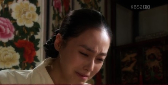 その瞬間、スヤンにひざまずき、夫を助けてもらった時の約束を思い出すキョンヘ。回想シーンはカットでした。