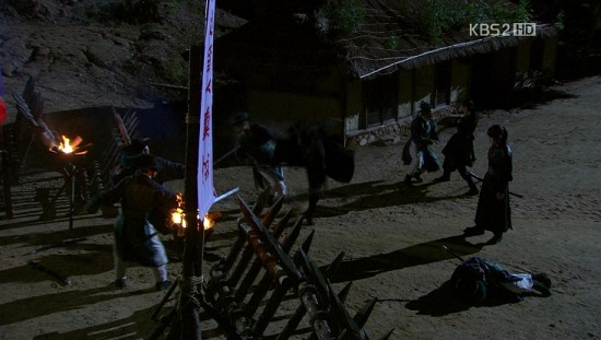 シン・ミョンが矢に射られたのを合図に、物陰から飛び出すスンユと光州の兵。