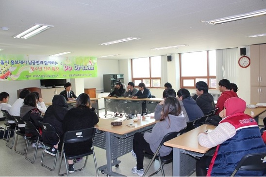 ソウル市がフリースクール運営機関として指定する福祉会館で生活している子どもたちに会い、彼らの悩みに耳を傾け、アドバイスするナムグン・ミンさん。ここの子どもたちは貧困その他の理由で家庭環境に問題があり、学校になじめず疎外感から問題を起こしてしまった子どもたちなのだそうです。