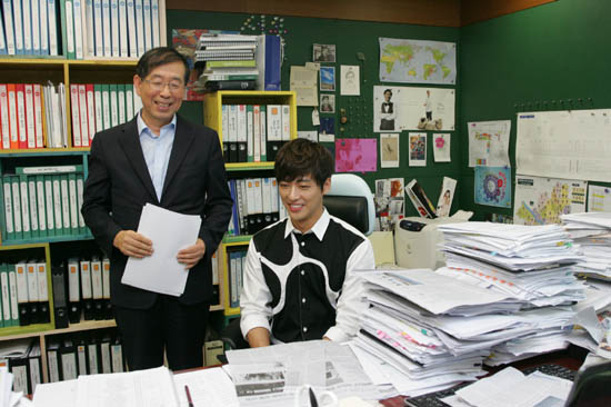 そして、ソウル市長、パク・ウォンスンさんの執務室でのツーショット。