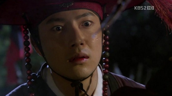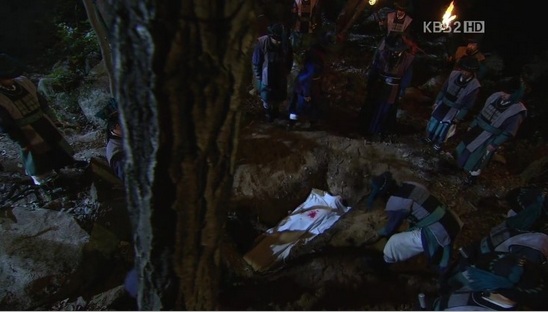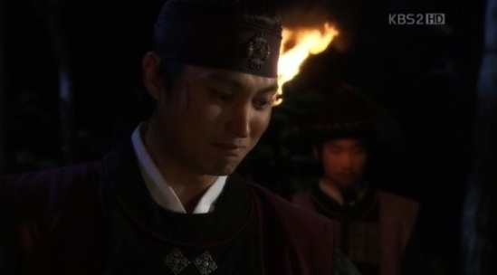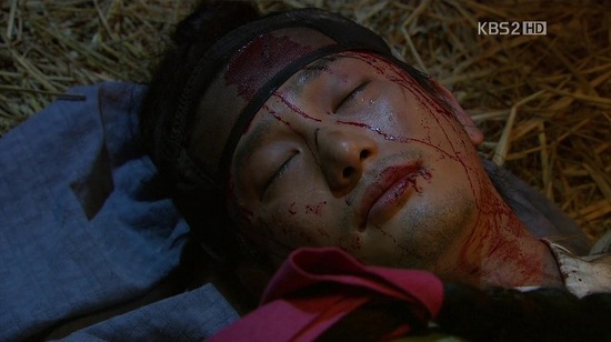 時遅くして退却命令を出すも、シン・ミョンを逃すまいとスンユが投げた刀に忠臣ジャボンがシン・ミョンを庇って討たれてしまい、最悪の結果に・・・・・・。
