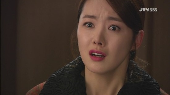 驚愕の面持ちで、チャ会長を見つめるユンジュ。
