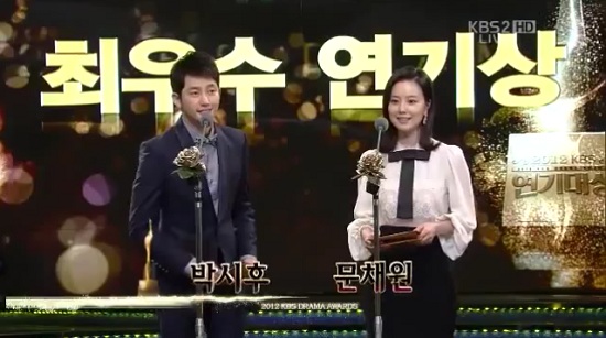 そしてこちらは、プレゼンターのパク・シフさんの様子も含めたムン・チェウォンさんの受賞の辞。