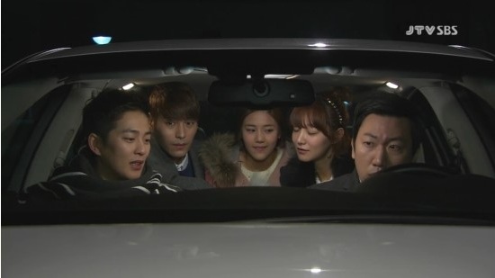 アジョンらは車の中からスンジョの様子を見守っていました。