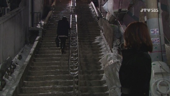改めてキャプ画を見て、あまりの「寒そう」加減に可哀想になってしまいました。階段が凍ってます。部屋でも吐く息が白いのは、「韓国ドラマあるある」でしょうか。(笑)