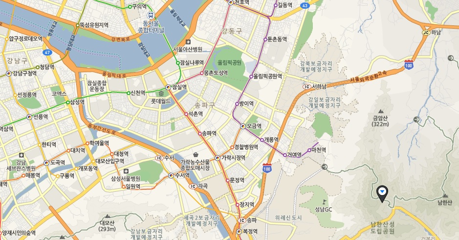 韓国語の地図で恐縮ですが、本当に江南地域からすぐの場所にあるんですよね。
