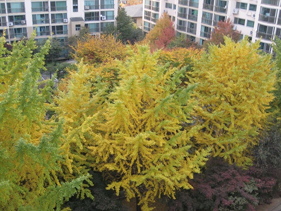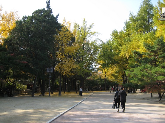10月下旬には急激に気温が下がり、日中の気温が2℃ほどだったため、真冬並みの服を持って出かけていた私は、予想外の初夏の陽気に着るものがありません。紅葉と銀杏並木が目を楽しませてくれる徳寿宮(トクスグン)を袖を捲り上げて汗を拭いながら歩く始末でしたが、今週はようやく持っていった服を着れそうです。とはいえ、まだタートルネックを着るほど寒いとは言えないのですが。