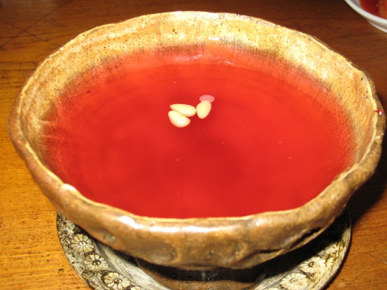 そして、私が頼んだ松の実を浮かべた五味子茶。
