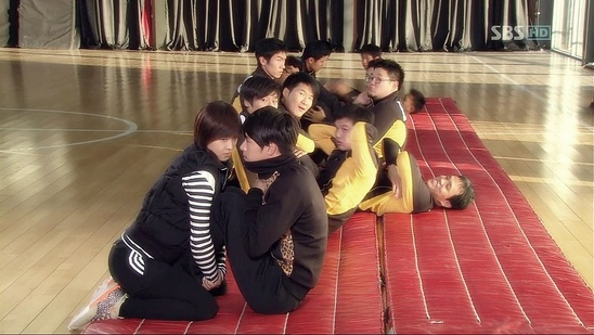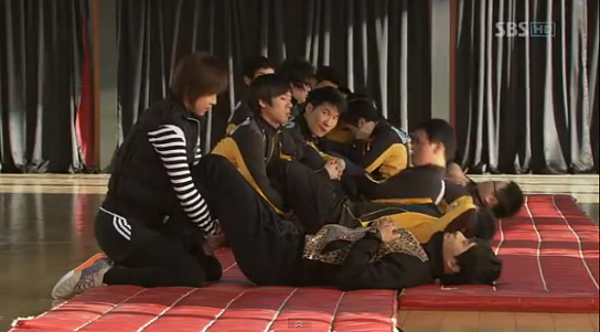 ライム会いたさにアクションスクールまでやってきたジュウォンが、ライムが足を押さえないなら腹筋をやらないとダラけるところから始まるこのシーン。