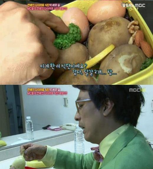 番組進行役の一人であるキム・ハンソクさんがパク・シフさんのメニューに挑戦しますが、1食食べてもう嫌になったそうです。