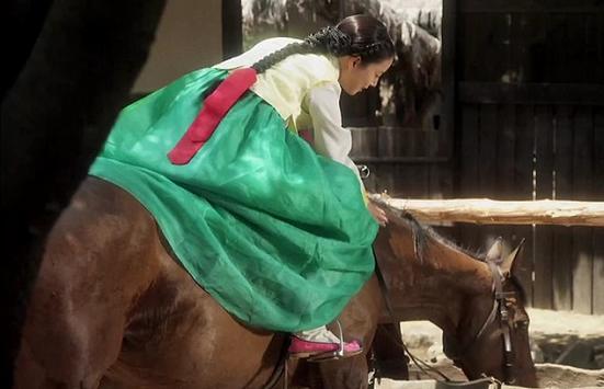 セリョン。馬の背に乗ったはいいものの、馬が暴走。