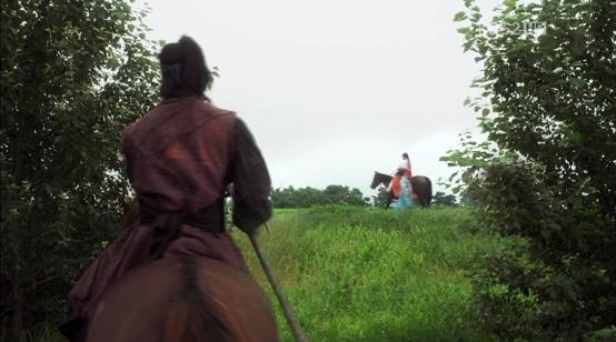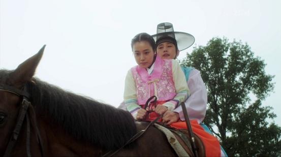 刺客が追っているとも知らず、セリョンが風を感じられるよう一緒に馬に乗って走らせるススンニム。