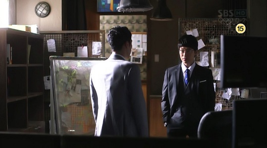 古巣のトゥルー・ストーリーを密かに訪れたところをセガングループのチョ・ヒョンミンが追ってきて、「本当はパク・キヨンだろう?」と正体を見破ってみせたのが前回16話のラスト。