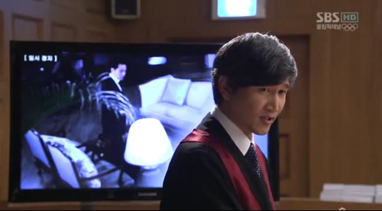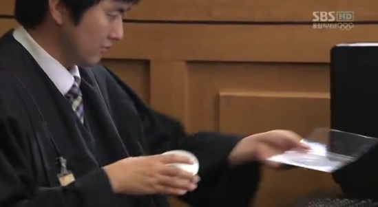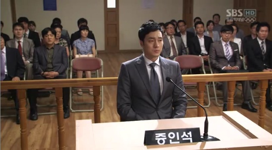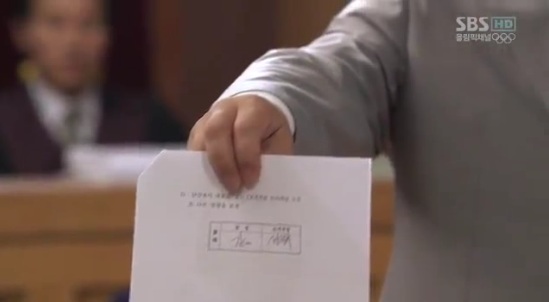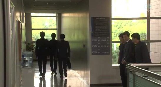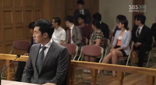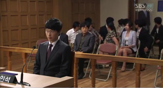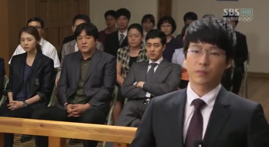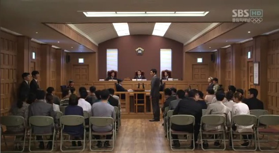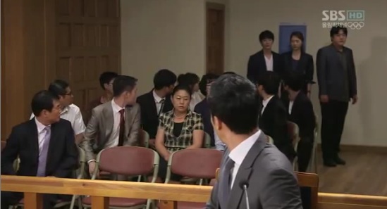 ユ・ガンミとピョン・サンウが裁判所に駆け込んできます。なにやら言伝を聞いた者が、法廷に入り、弁護士の下へ。