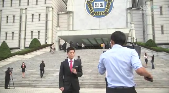 法廷の外には騒ぎを聞きつけたマスコミが集まっていました。