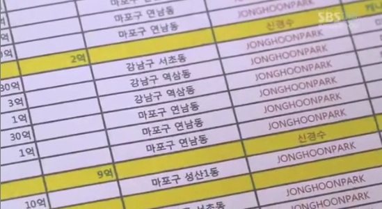クォン・ヒョクチュが一番大事なページと告げたそこには、「セガン政治裏献金事件当時の資金移動経路」と書かれた資料が、金を渡した相手の情報とともにありました。