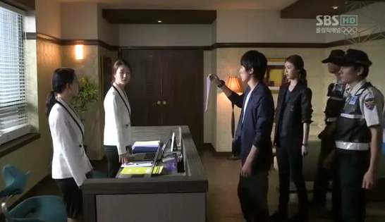 チョ・ヒョンミンによる殺人の事実を裏付けるため、セガン本社の家宅捜査に入るピョン・サンウ刑事(イム・ジギュ扮)とユ・ガンミ刑事(イ・ヨニ扮)。
